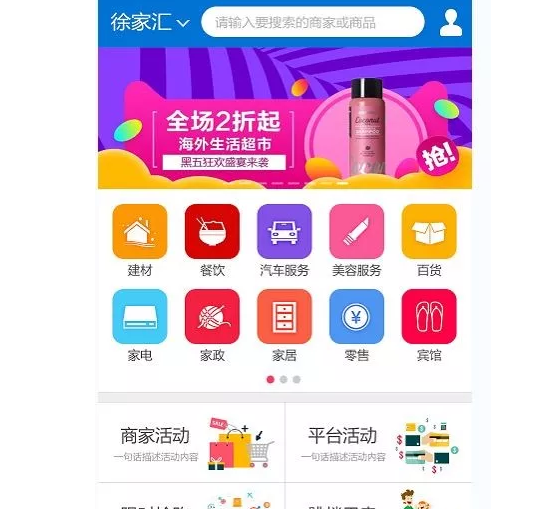 商品分类、订单、会员、商家活动等